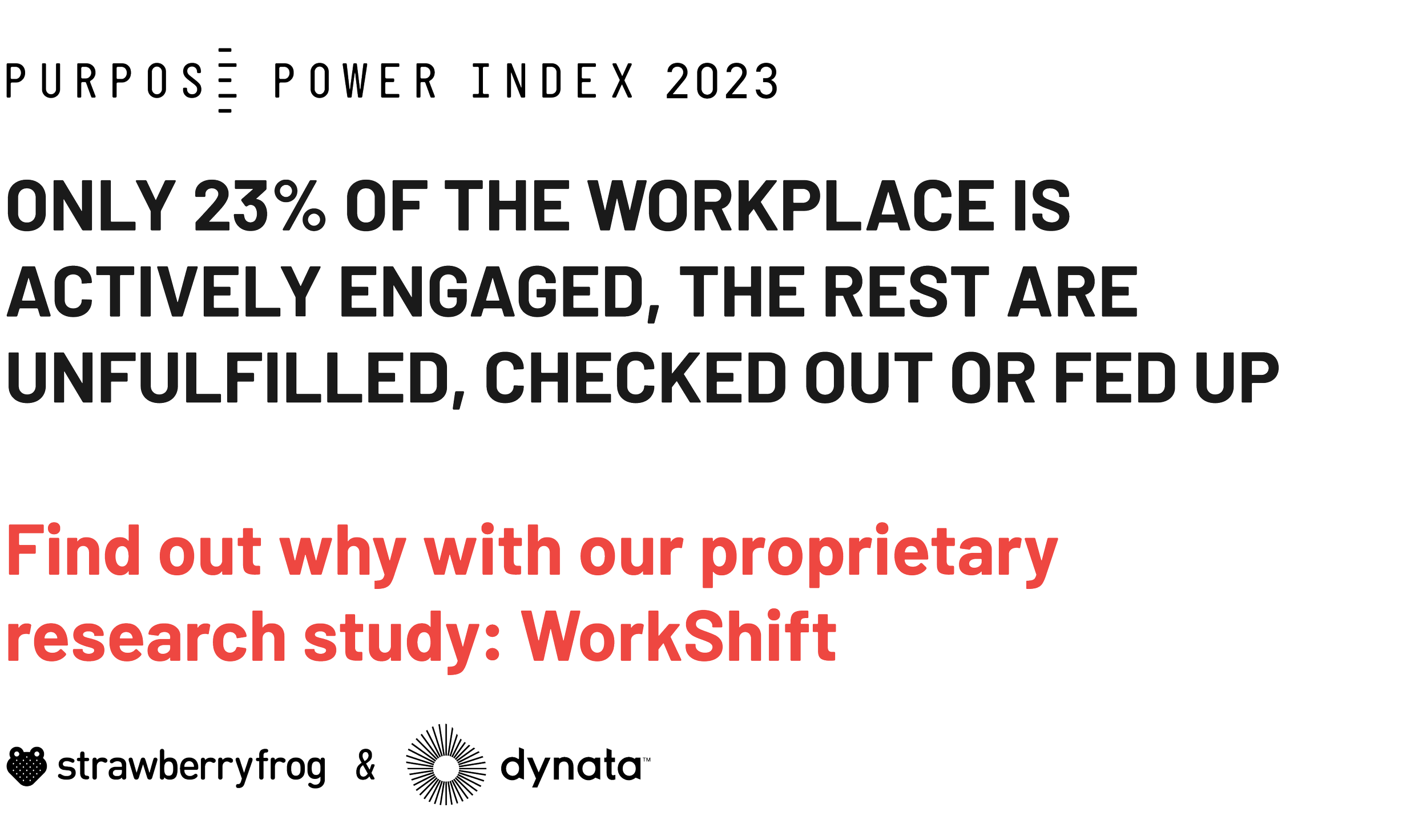 In our latest Purpose Power Index research, StrawberryFrog and Dynata® have partnered on a groundbreaking new study on the core driver of US employee happiness, engagement and retention: meaningful work.